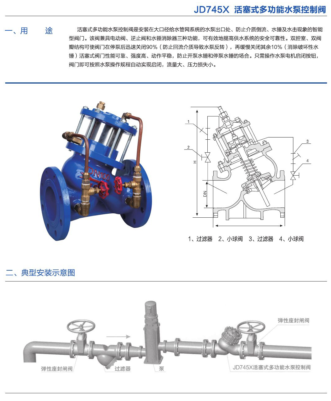 - 安裝在大口徑給水管網系統的水泵出口處、防止介質倒流、水錘及水擊現象的智能型閥門。